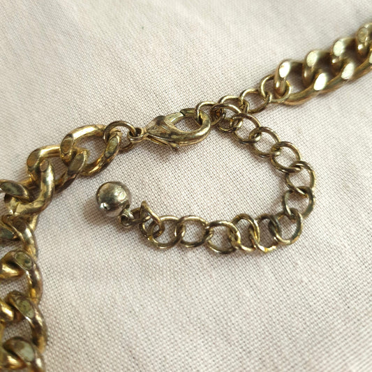 Chunky Gold Tone Bib Necklace with Yellow Gems. Recycled Jewellery