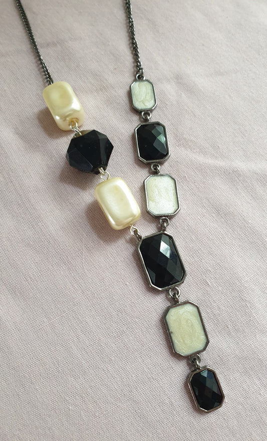 Black and Silver Upcycled Necklace with Dainty Beaded Detail
