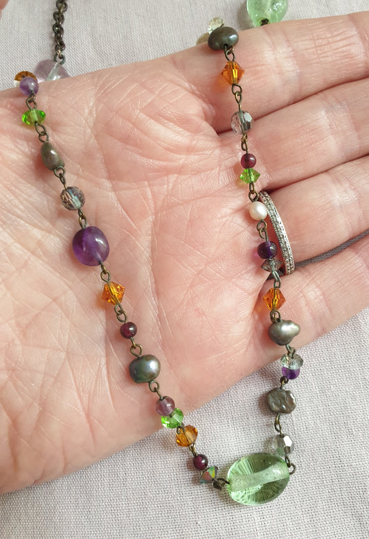 Dainty Multicolour Glass Beaded Necklace. Recycled Jewellery