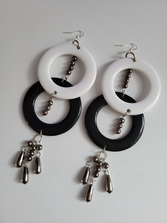 Black and White Ring Bold Statement Earrings with Bead Earrings. Recycled, Upcycled, One of a Kind