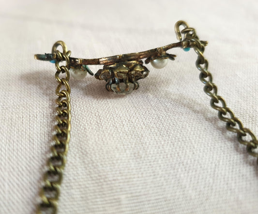 Silver Tone Love Birds Necklace with Faux Pearl Detail. Recycled, Upcycled, One of a Kind