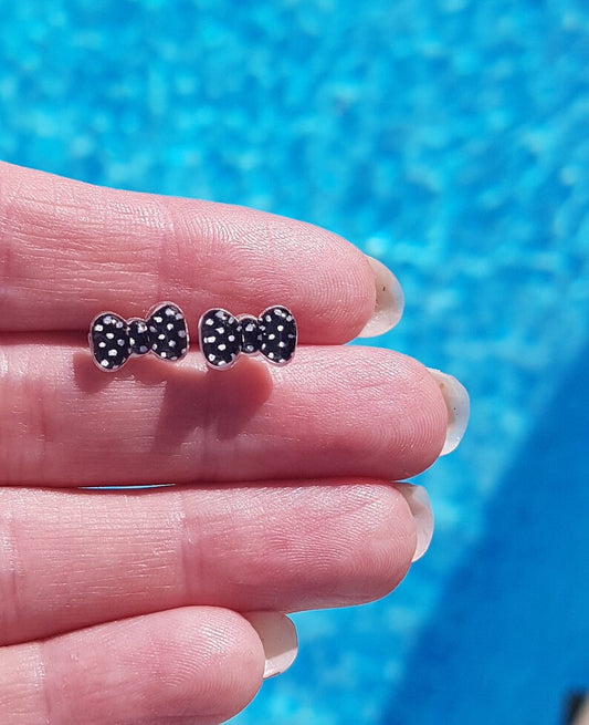 Black and White Polka Dot Bow Mini Studs. Allergy and Nickel Free Earrings. Childrens Earrings, Small Studs, Quirky Earrings, Cute Earrings