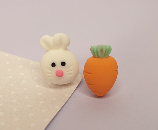 Rabbit and Carrot Stud Earrings. Hypoallergenic, Nickel and Allergy Free. Easter Gift, Rabbit Lover, Easter Bunny