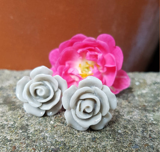 Pretty Floral Studs - Grey Roses or Pink Chrysanthemums. Kitsch, Cute, Great Gift Hypoallergenic Stocking Filler
