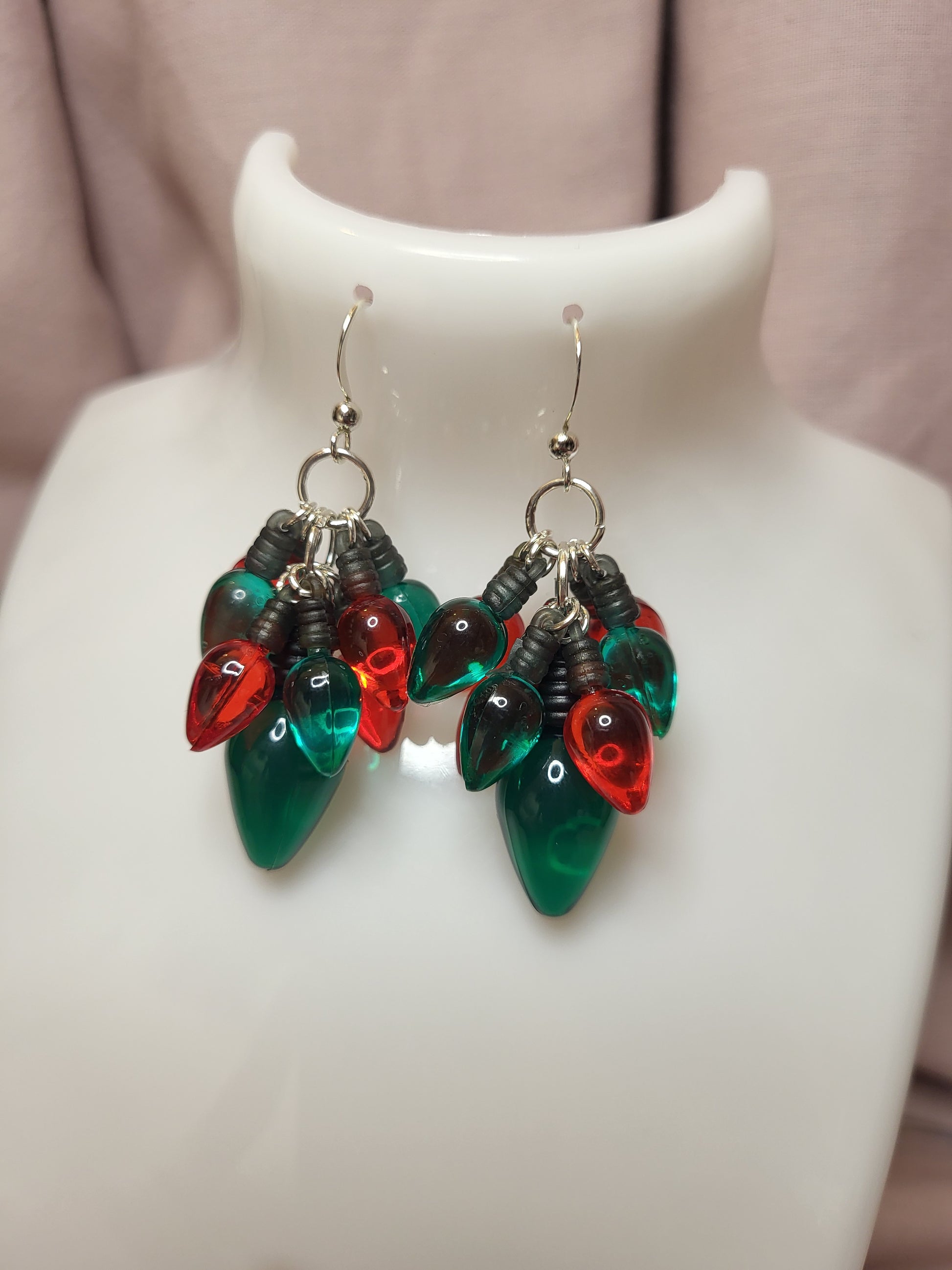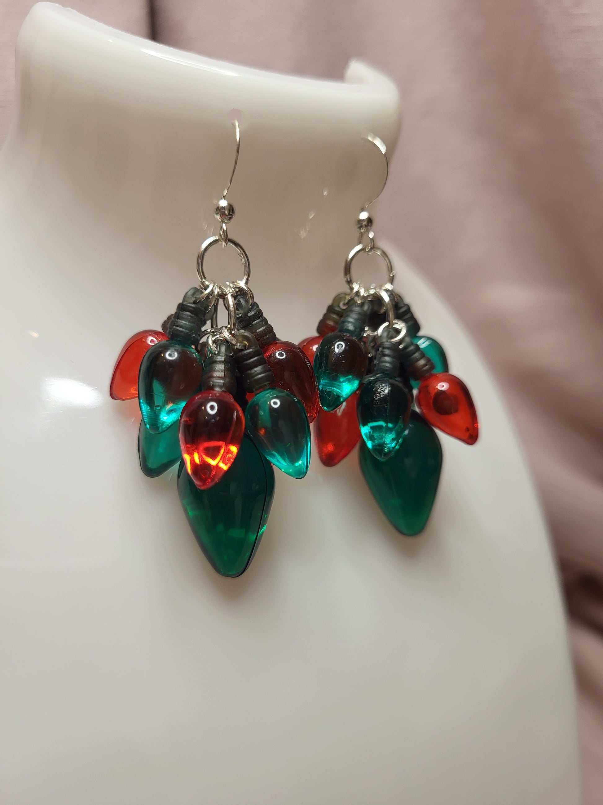 Red and Green Christmas Light Statement Earrings. Clip On or Nickel Free Wires. Christmas Earrings. Fairy Light Jewellery